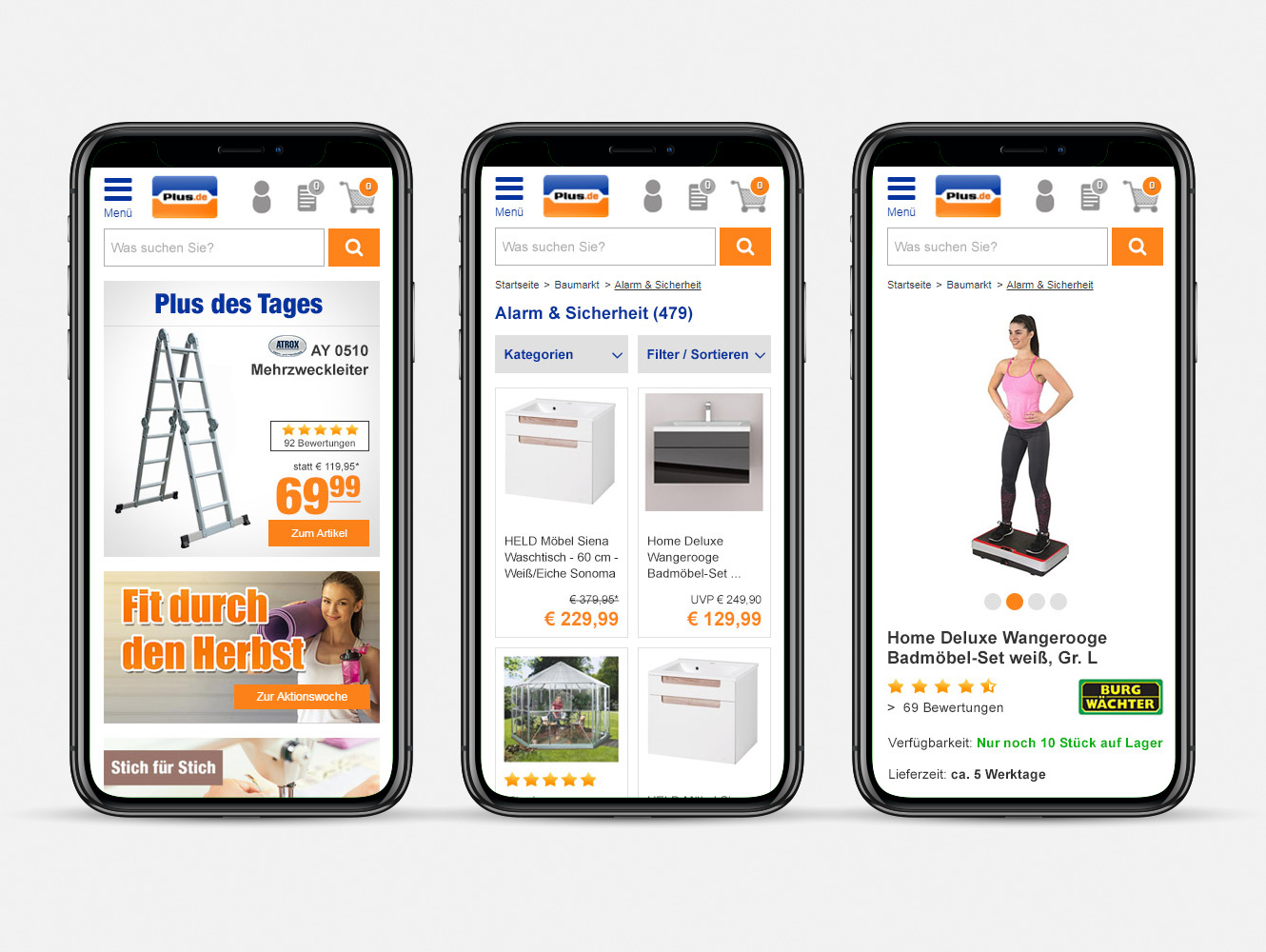 Auch der Onlineshop von Plus.de war nach seinem Relaunch komplett responsive und wurde „mobile-first“ konzipiert und umgesetzt.
